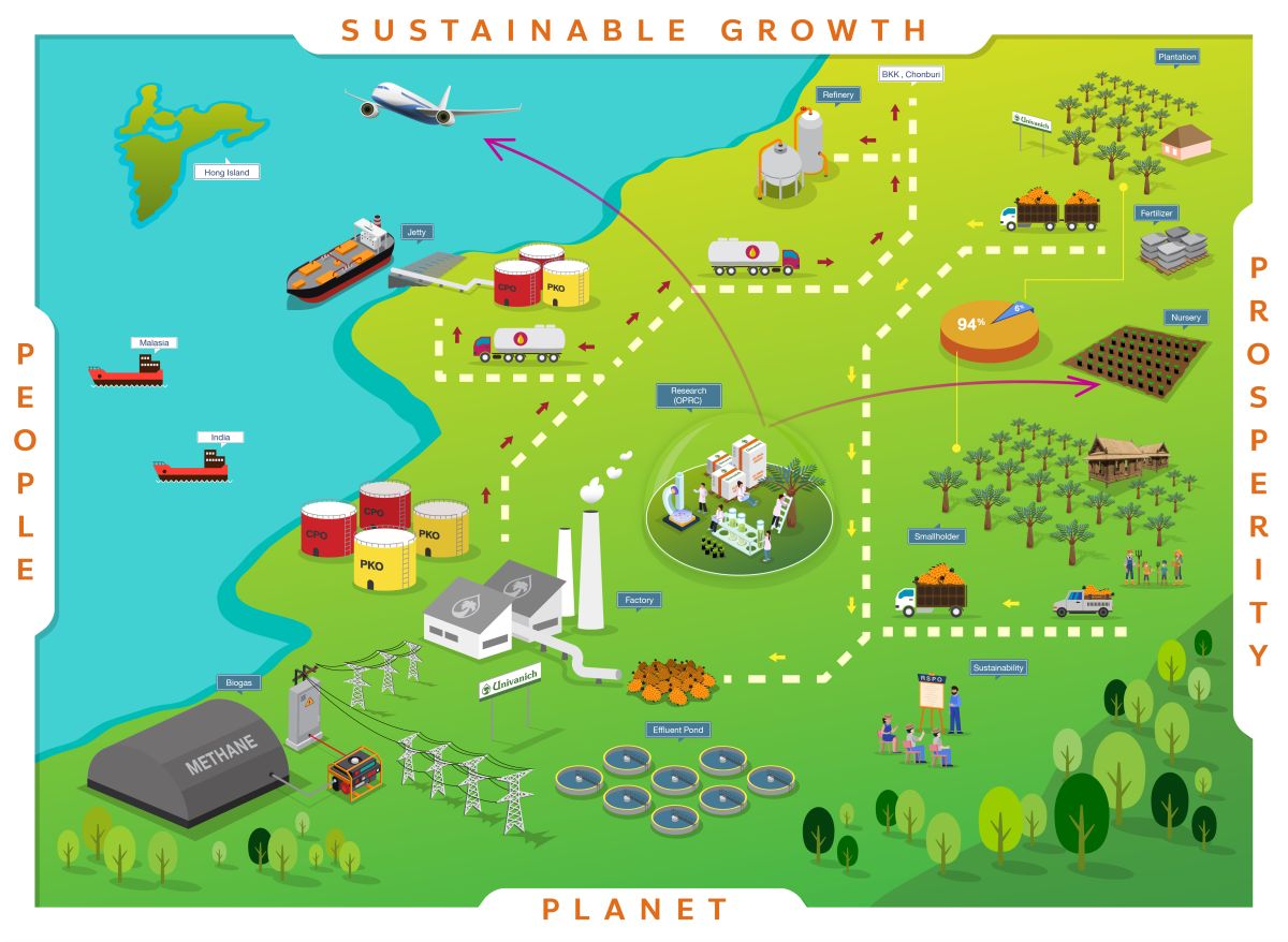 Univanich Palm Oil PCL has led the way in changing that negative perception into a new reality. Thailand is now the world’s third-largest palm oil producer with annual production exceeding two million tonnes. In helping to promote this successful transformation the company has emphasized what it perceives as the “Four Pillars of Sustainability.”